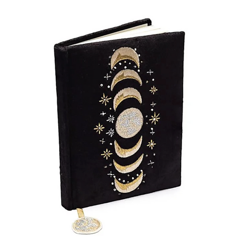 Taropuoti ImportsSamettikantinen muistikirja – Kuun vaiheetTyylikäs muistikirja, jossa pehmeä samettikansi, hienovarainen kirjonta ja koristehelmiä. Kuun vaiheita e...