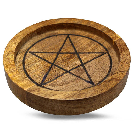 Mango-puinen kristalliritualialusta, pentagrammi, 15 cm
