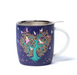 Teebecher mit Deckel und Edelstahlsieb mit herzförmigem Baum- und Vogeldesign.