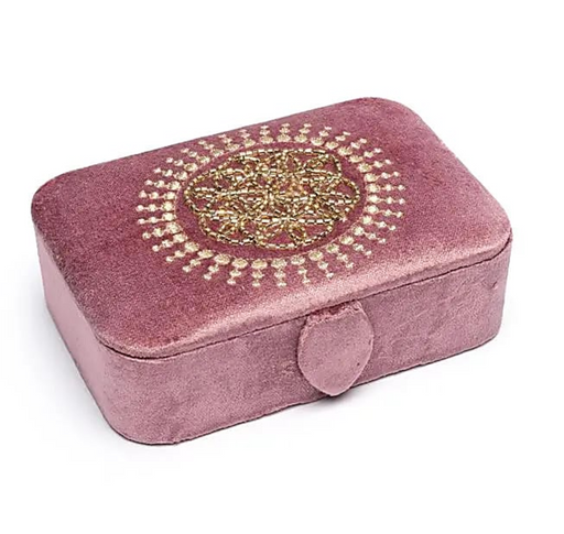 Korurasia tai tarotlaatikko, jossa hienoa kirjontaa ja koristehelmiä. Pehmeä samettipinta ja yksityiskohtainen kirjonta tekevät rasiasta sekä käytä...
