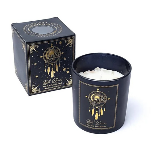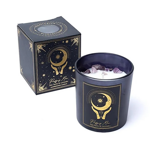 Manifestaatiokynttilä lasiastiassa – palo santo & laventeli, ametisti Käsin valettu soija- ja palmuvahakynttilä, joka sisältää eteerisiä öljyjä...