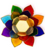Kaunis lootuksenkukan muotoinen kynttilälyhty, joka on valmistettu aidosta capiz-simpukasta ja viimeistelty kultaisilla reunoilla. Lyhdyn väritys edustaa seitsemää päächakraa, ihmisen energiakeskuksia, ja lootus symboloi siirtymää pimeydestä valoon sekä tietämättömyydestä ymmärrykseen.