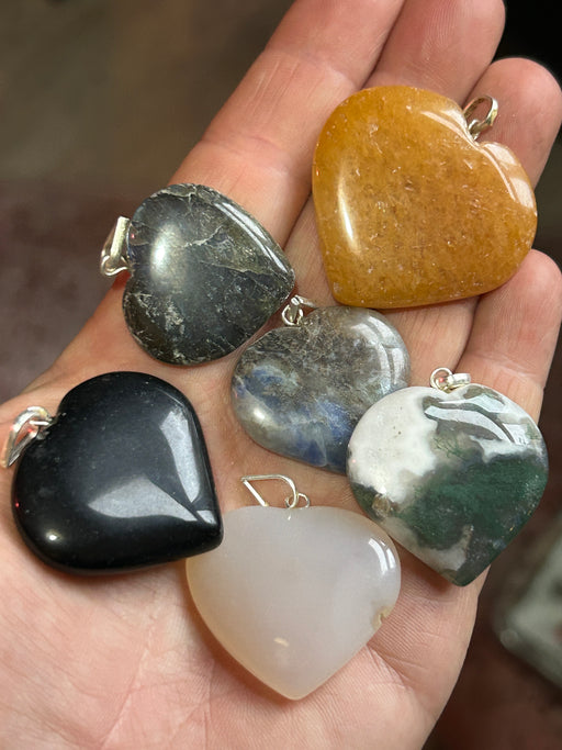 Sydämen muotoinen kristalliriipus. Riipusten koko vaihtelee keskimäärin 2–4 cm. Jokainen sydän on käsintehty ja peräisin Intiasta. Kivien sävyissä,...