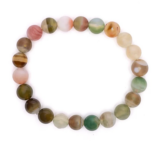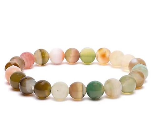 Akaattirannekoru – maanläheiset ja läpikuultavat sävyt Elastinen rannekoru, joka on valmistettu luonnollisista akaattihelmistä eri sävyissä. Jokain...