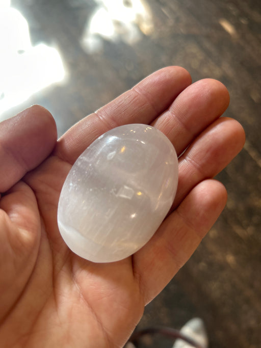 Selenite, drum ground approx. 3–4 cm - Morocco Selenite is a beautiful white, subtly shimmering stone that brings peace and clarity to those aro...