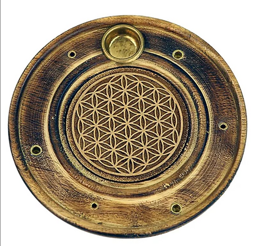 Tarotpuoti ImportTriple Moon Rose Round Wooden Ash Catcher Stand 4" Incense Stick Burner Beautiful and Classic incense holder tray gives you a traditional style in ...