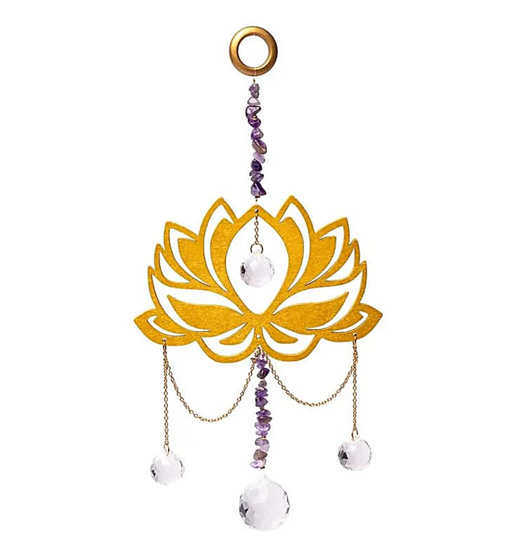 Tarotpuoti ImportLotus-aurinkosieppari ametistilla ja kristallipalloilla Tuo kotiin valoisuutta ja lempeää energiaa tällä kauniilla lotusaiheisella aurinkosiepparil...