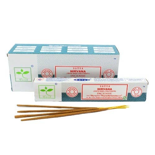 Earth Satya Nirvana suitsuketikku 15 gTuoksuyhdistelmä: valkosalvia ja palo santo Satya Nirvana -sarjan Earth-suitsukkeet yhdistävät valkosalvian p...