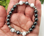 Tämä joustava puolijalokivistä valmistettu rannekoru on suunniteltu tukemaan empaattisia ihmisiä suojaamaan itseään ulkopuolisilta energioilta. Rannekorussa yhdistyvät terahertsi, valkoinen howliitti ja hematiitti. Pituus on noin 19 cm ja koru on kaksoisnyöritetty kestävyyden varmistamiseksi.