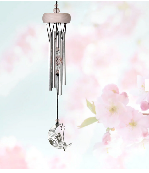 Woodstock ChimesTämä hurmaava pieni Fairy tai Buutterfly Chime on kuin makea tuulen sävelten herkku, jota koristaa hopeinen keijukoriste sirpin muotoisella ...