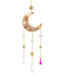 Tyylikäs puolikuun muotoinen aurinkosieppari, joka on koristeltu vaaleanpunaisen kuukiven pienillä kivisirpaleilla. Alaosassa riippuva hiottu kristalliriipus taittaa auringonvaloa ja luo säteileviä heijastuksia ympärilleen. Täydellinen yksityiskohta ikkunaan tai hengelliseen sisustukseen.