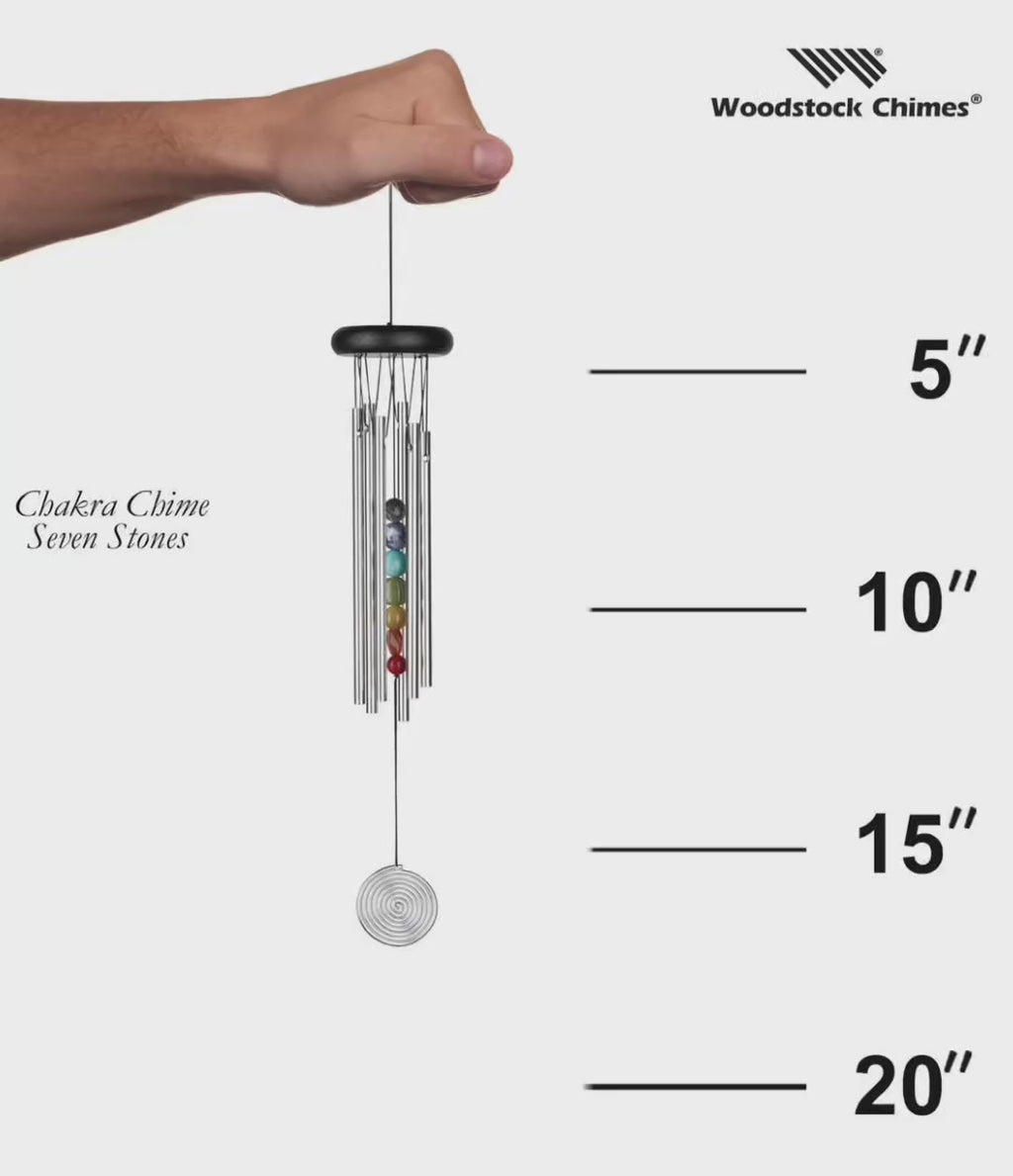 Woodstock Chakra Chime on kaunis ja symbolinen tuulikello, jonka ääni ja värit edustavat ihmisen seitsemää päächakraa – kehon energiakeskuksia, jotka kulkevat selkärangan linjassa alhaalta ylöspäin.