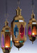 Suuri kullanvärinen roikkuva monivärilasilyhty 15 x 13,5 x 45 cm.