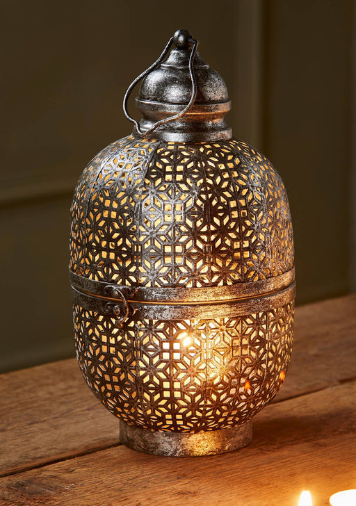 Tarotpuoti ImportKlassinen, suuri musta-hopeasävyinen koristeellinen lyhty, jossa on kauniisti kuvioitu kupolimainen metallipinta. Kukka-aiheinen leikkauskuviointi ...