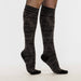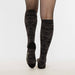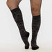 Yksityiskohtainen damastikuvio ja salaperäiset lepakot yhdistyvät klassisissa polvipituisissa sukissa, jotka eivät jää huomaamatta. Täydelliset, kun halutaan tehdä vaikutus tumman elegantilla tyylillä.